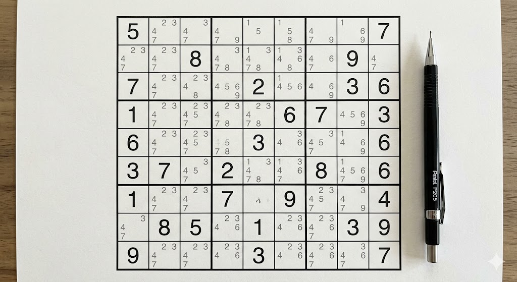 Pencil marksAlla nivåerHålla reda på möjliga kandidater i svåra pussel